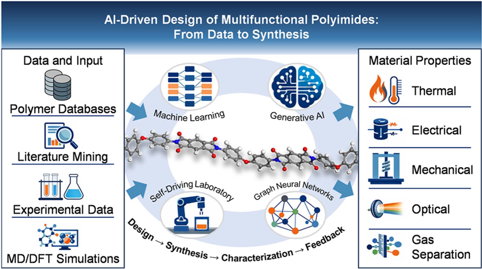 189. Zhang, Zepeng#; Wu, Qikun#; Wang, Xinlong#; Liao, Yansong; Lin, Yuzhou; Li, Ziqin; Wu, Shaoping; Zhang, Quancong; Xiao, Zongyuan; Gao, Mingbin*; Su, Wenqiu*; Hong, Wenjing*. AI-Driven Design of Multifunctional Polyimides: Revolutionizing the Paradigm from Data to Synthesis. Acta Physico-Chimica Sinica, 2026, DOI: 10.1016/j.actphy.2026.100245