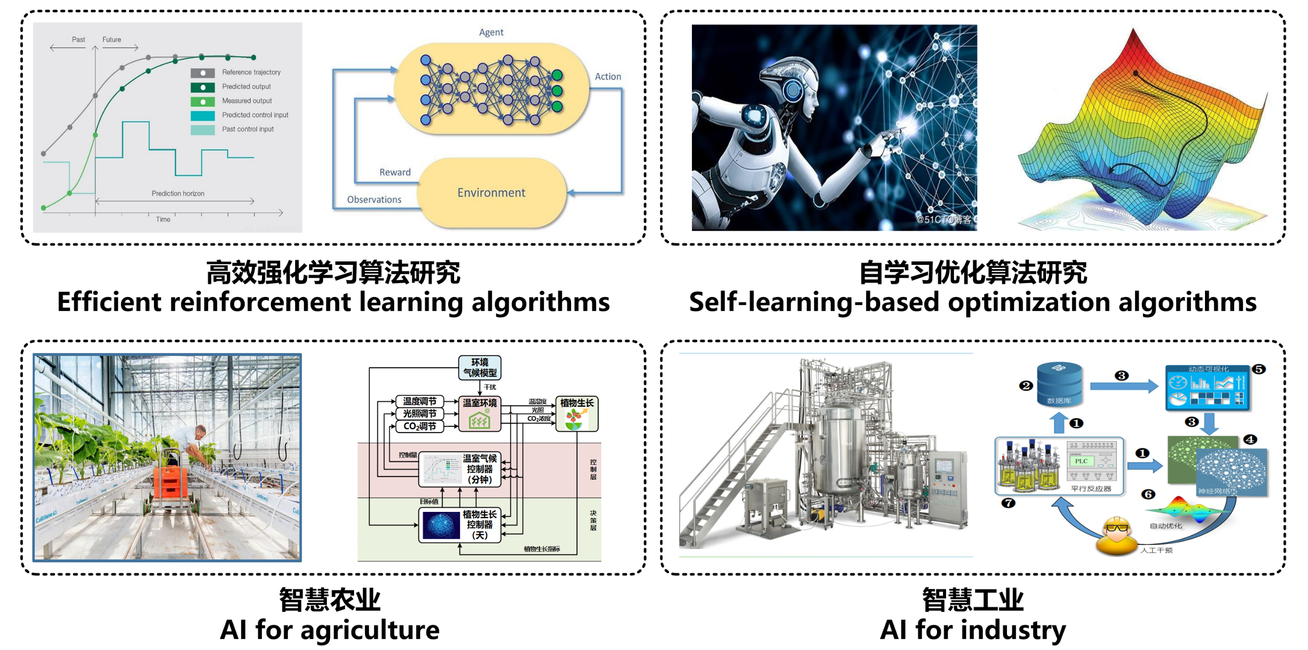 基础研究:“授人以鱼,不如授人以渔”,在面对越来越复杂的工业系统和生产过程的时候,我们希望教给机器的不仅仅是简单的控制方法,而是具有自学习和自优化能力的控制方案。对此,在理解各类人工智能和机器学习算法的基础上,我们要深入研究人类学习各种范式,并结合传统的先进控制思想,开创性地研究具有高效智能学习能力的控制方案和优化算法,并努力从理论上对算法的性能进行分析和解释,为推动人工智能技术在实际复杂工业过程的广泛应用奠定坚实基础。