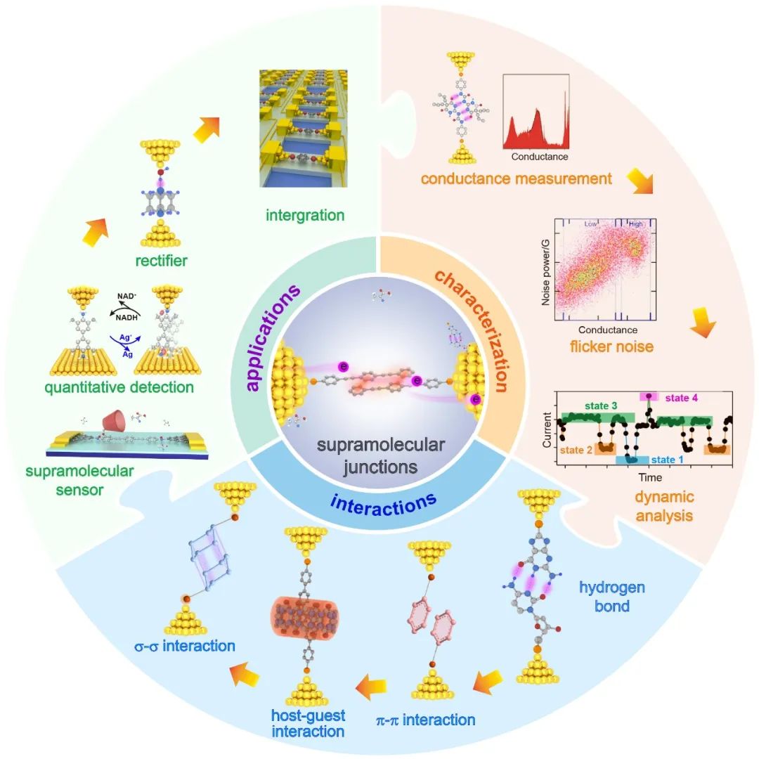 近期,我们对单分子尺度超分子电子器件的表征和应用进行了总结和展望,论文以“Characterization and Application of Supramolecular Junctions” 为题发表在国际学术期刊Angewandte Chemie International Edition上。