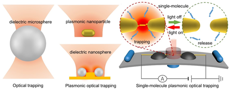 人们对于在常温常压条件下尤其是溶液环境中俘获或者操控微观粒子的追求从未停止,以期不断减少可操控的微观粒子的尺寸,最终实现单分子操控的目标。然而,分子布朗运动严重抑制了分子的顺利俘获。人们仅可在特殊条件下将分子与微结构结合以增大俘获力,但仍难以实现可控的俘获和释放。除了分子量很大的生物大分子之外,迄今尚未能实现溶液中小分子的俘获。