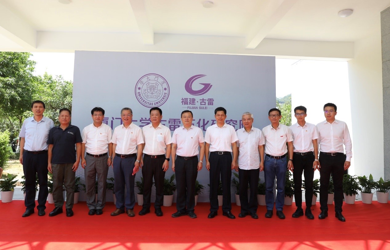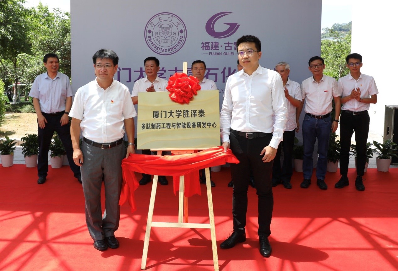 2020年7月28日,厦门大学古雷石化研究院揭牌仪式、厦门大学胜泽泰多肽制药工程与智能设备研发中心揭牌仪式在厦门大学漳州校区隆重举行,并取得圆满成功。厦门大学校长张荣、副校长叶世满、副校长江云宝,嘉庚学院院长王瑞芳,化学化工学院党委书记宋毅、院长谢兆雄、副院长洪文晶,古雷港经济开发区党工委副书记詹伟、管委会副主任张庆东,漳州开发区管委会副主任林朝晖,胜泽泰医药科技总经理何润泽,古雷经济开发区相关部门负责人,厦门大学相关职能部门负责人,厦门大学漳州校友会校友代表,古雷石化研究院筹备小组成员,部分师生代表以及研发中心全体人员出席本次活动。