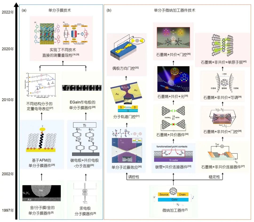 图3单分子膜技术(a)和单分子微纳加工器件技术(b)的发展
