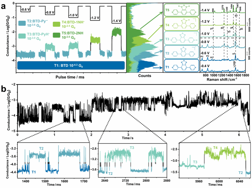 图2:通过单分子电导实时监测BTD催化析氢反应过程。