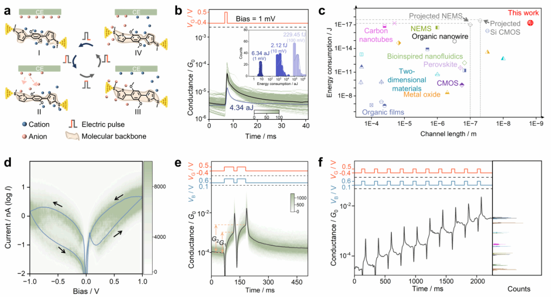 从更大的视角看,这项工作的意义不只是“做出了一个很小的器件”,而是提出了一种在单分子尺度实现类脑功能的新思路。通过离子-分子动态耦合和栅压-偏压协同调控,研究团队让单个分子具备了类似生物突触的多态、可塑性和记忆能力,并将操作能耗压低到阿焦耳量级。未来,随着器件稳定性、可集成性和阵列化水平的进一步提升,这类单分子神经形态器件有望为超低功耗人工智能芯片、边缘计算和新型类脑系统提供全新的底层硬件方案。