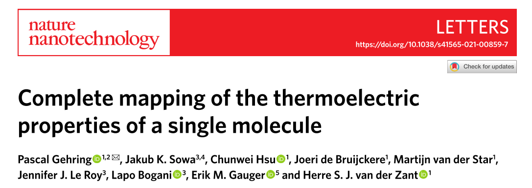 Nature Nanotechnology: 如何表征单分子热电性质?