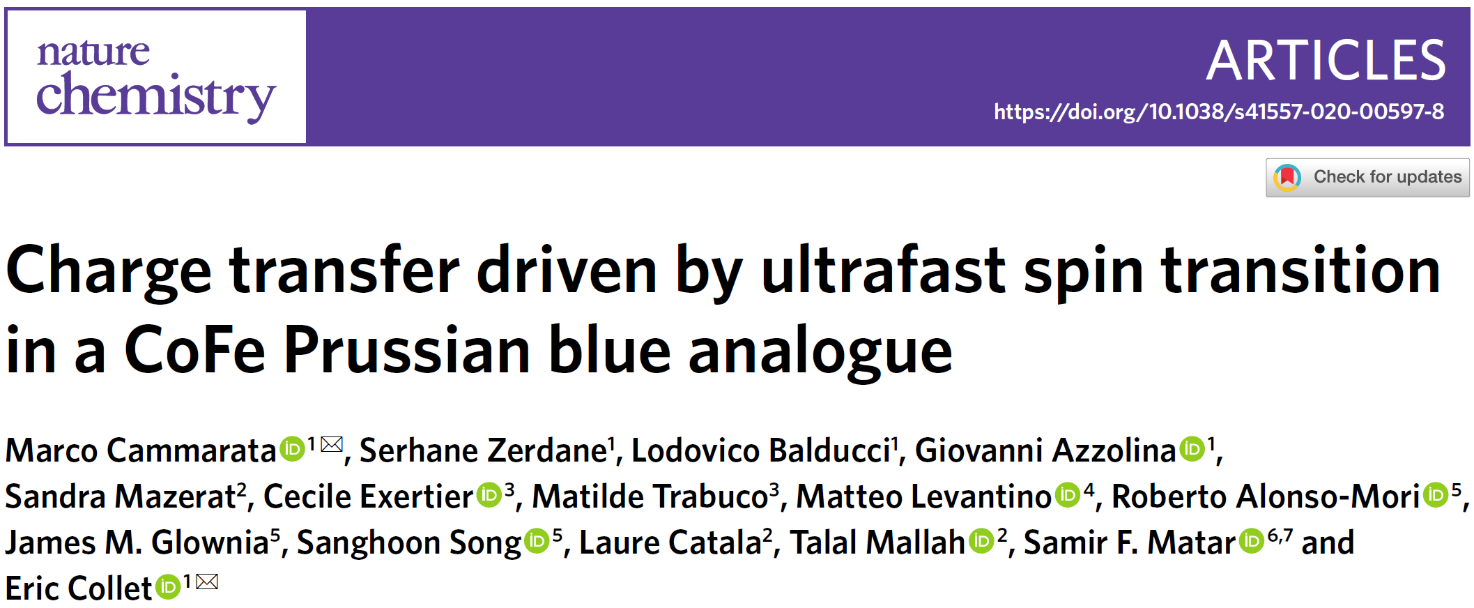 Nature Chemistry:普鲁士蓝类似物光致自旋态捕获的超快动力学