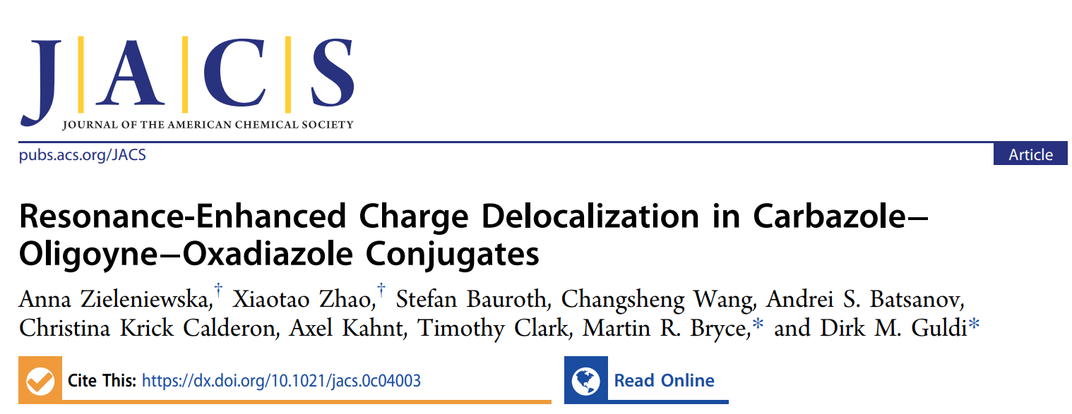 JACS:咔唑-炔-恶二唑共轭分子中共振增强的电荷离域效应