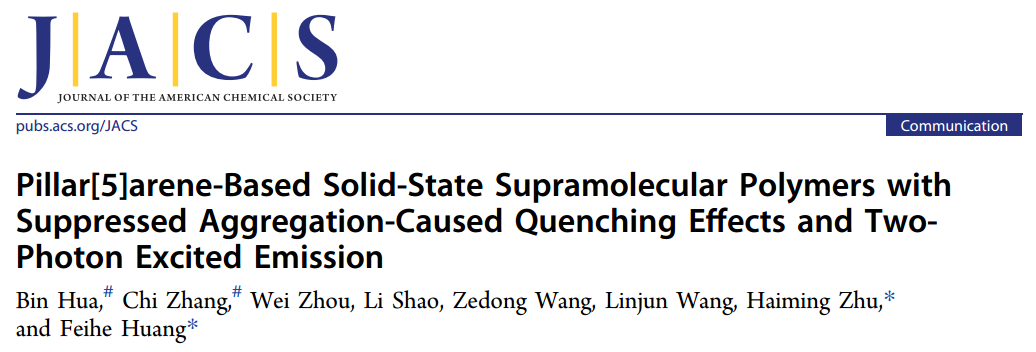 JACS:具有抑制猝灭效应和双光子激发发射特性的柱芳烃超分子聚合物