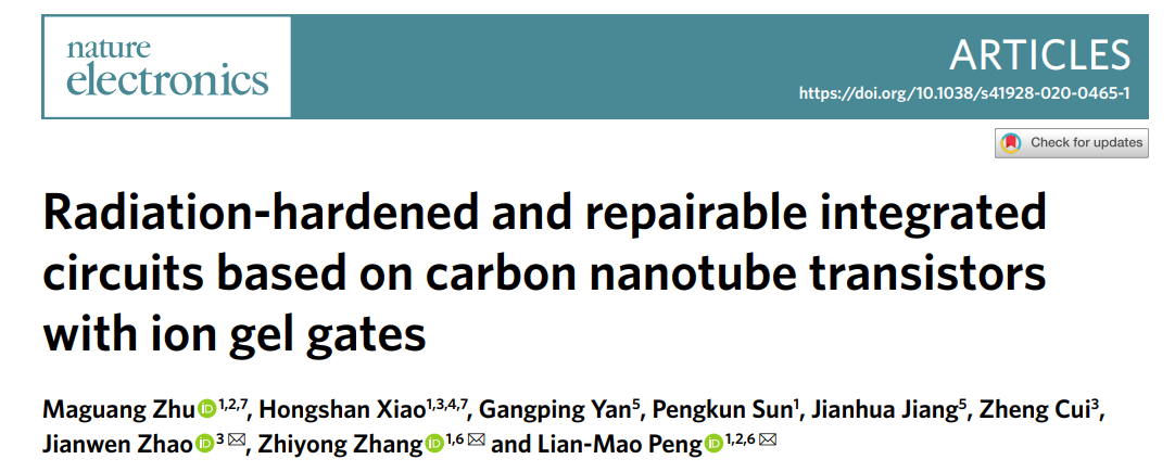 Nature Electronics:超强抗辐射能力的可修复碳纳米管晶体管集成电路