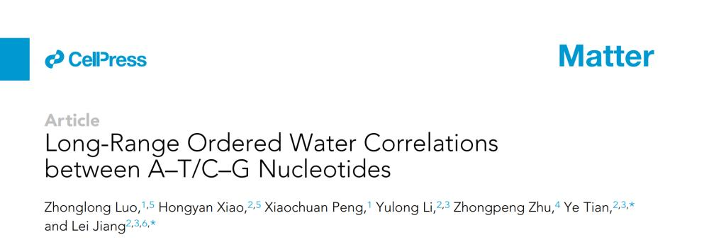 Matter:长程有序水链在A-T和C-G核苷酸之间的分布