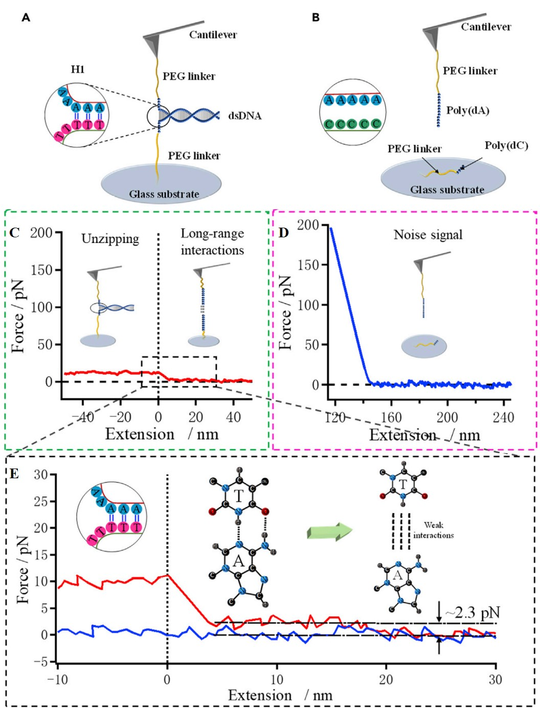 (E)绘制在一起H1裂解的力曲线和装置噪声信号图,以显示A-T核苷酸之间的长程相互作用。