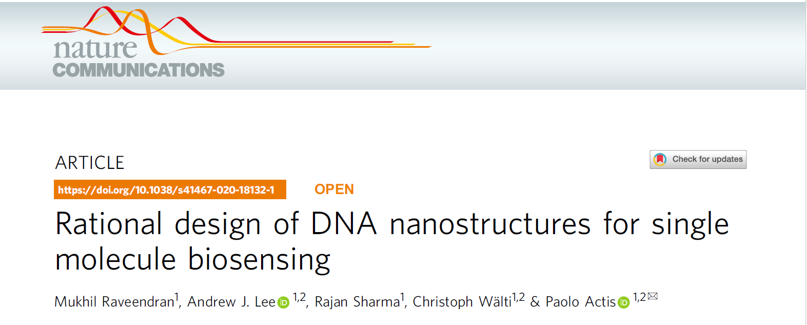 Nature communication:基于DNA纳米器件的单分子生物传感器构建