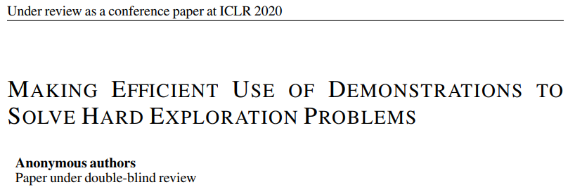 1 Paine, T. et al. Making Efficient Use of Demonstrations to Solve Hard Exploration Problems. ICRL (2020).