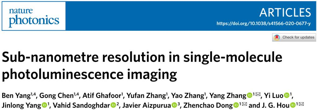 Nature Photonics:亚纳米分辨率的单分子光致发光成像