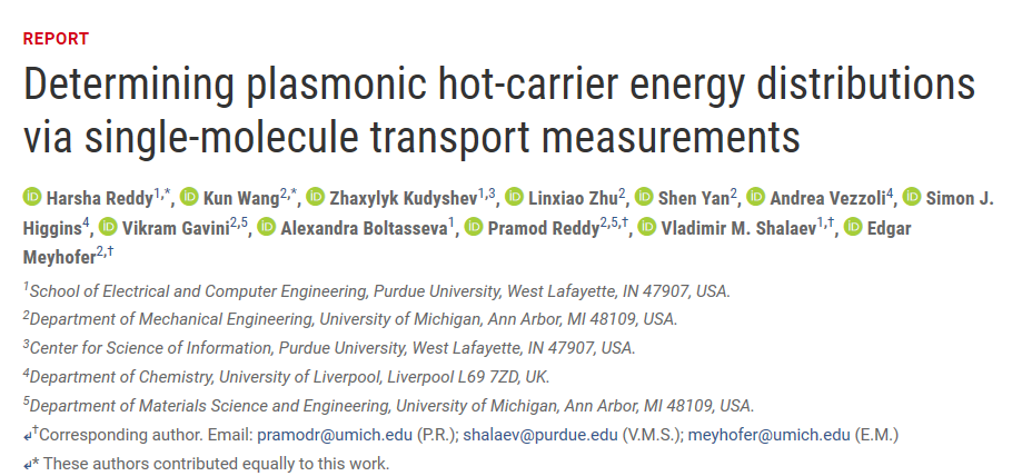 Science:通过单分子输运测定等离激元热载流子的能量分布