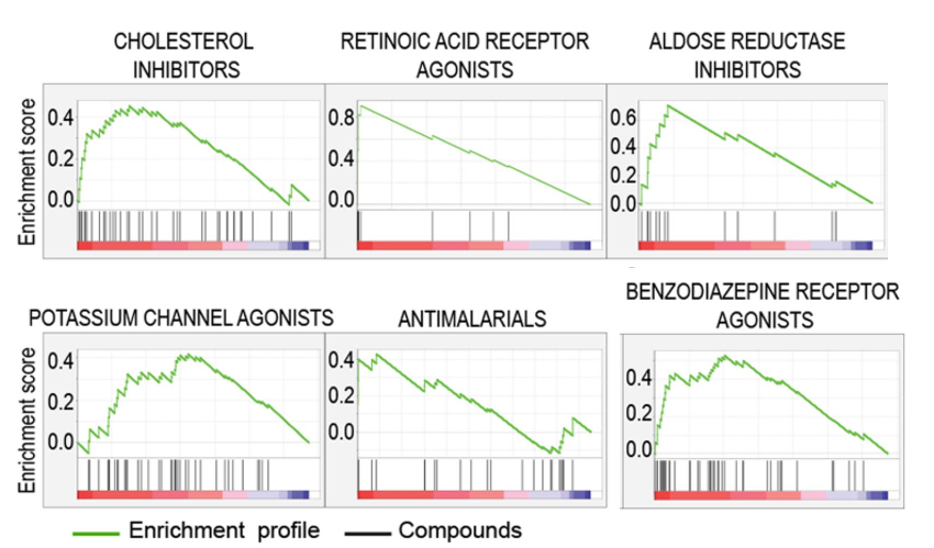 图3:基因集富集分析(GSEA)和靶标基因表达:几种经过验证的化合物是GSEA靶标类别的成员。