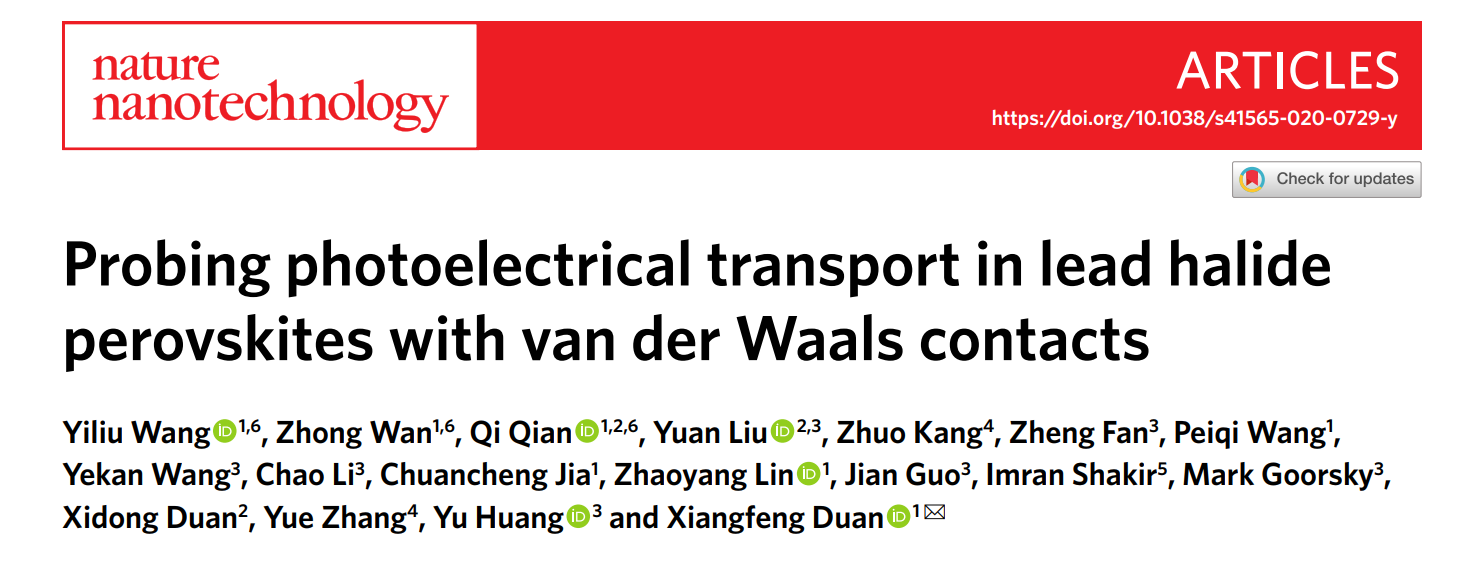 美国加州大学洛杉矶分校段镶锋教授研究团队报告了一种范德华(Van der Waals)集成方法,可在单晶卤化钙钛矿薄膜上创建高性能接触,同时将界面损伤降至最低,并提供原子清洁的界面。与沉积的接触方法相比,范德华接触显示出较低的接触电阻(约2-3个数量级),从而可以在较宽的温度范围内进行系统的输运研究。更重要的是,他们在20K下的磁输运研究中揭示了量子干涉引起的弱局域化行为,其研究结果为探索这类“软晶格”新材料奠定了基础[3]。