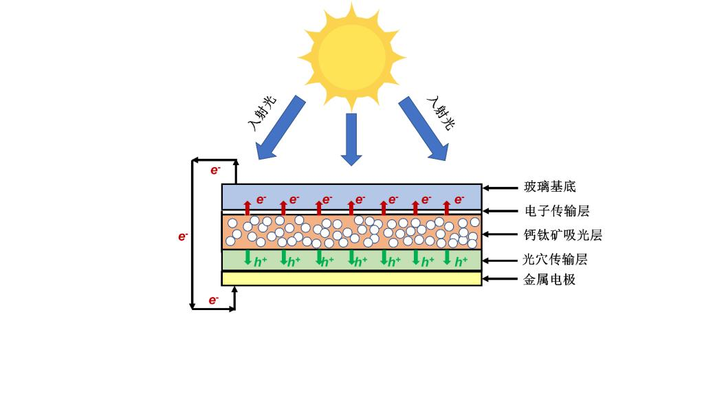太阳能一直被认为是一种取之不尽,用之不竭的能源,是解决全球变暖和能源危机的理想选择之一。在过去的一个世纪里,科学家们发明了一系列能将阳光转化为电能的光伏器件,钙钛矿太阳能电池是其中之一,其展现出了巨大的应用潜力而引起了越来越广泛的关注。在实验室条件下,钙钛矿太阳能电池(Perovskite Solar Cells, PSC)已经表明可以与现有的光伏技术相媲美。然而,大多数PSC在受控实验测量环境中所测试出的电池性能与室外现场试验(如昼夜循环,光照幅度和温度不断变化)所得到的性能会有差异[1]。钙钛矿太阳能电池的功率转换效率从2009年的3.8%大幅提高到2019年的25.2%,已经超过了大多数其他光伏设备[2],其工作原理如图1所示。