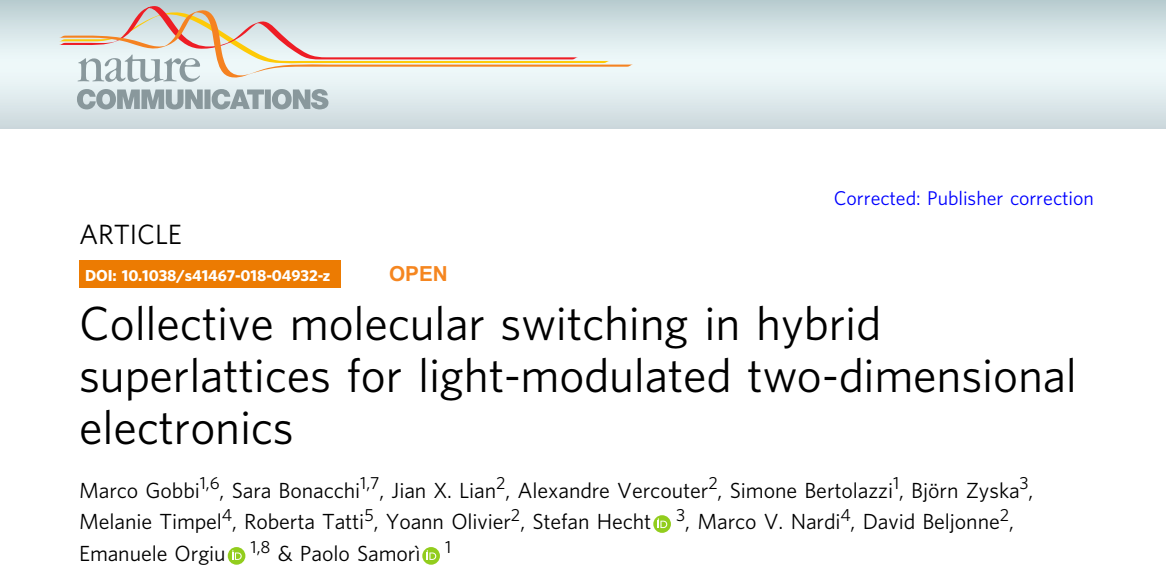 Marco Gobbi, Sara Bonacchi, Jian X. Lian, Alexandre Vercouter, Simone Bertolazzi, Björn Zyska, Melanie Timpel, Roberta Tatti, Yoann Olivier, Stefan Hecht , Marco V. Nardi, David Beljonne, Emanuele Orgiu & Paolo Samorì