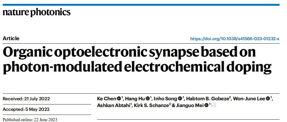 Nature photonics:基于光子调制电化学掺杂的有机光电突触