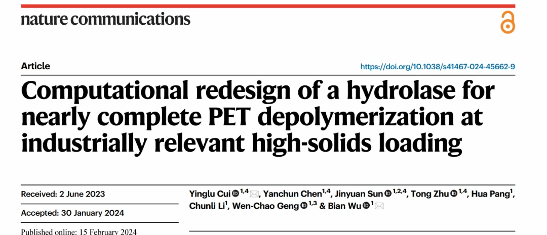 作者建立一种混合计算策略重新设计了一个PET水解酶TurboPETase,且该酶的性能明显优于其他已知的PET水解酶,可在工业相关的固体底物负载水平上实现消费后PET瓶的几乎完全降解。这种高效、优化的酶将在未来成为工业塑料回收过程中具有良好应用的候选者。