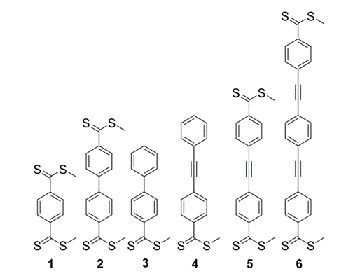 图1:甲基硫代甲酸酯为锚定基团的系列分子(化合物1、2、5、6用于STM-BJ测量化合物3、4用于表面拉曼测试)