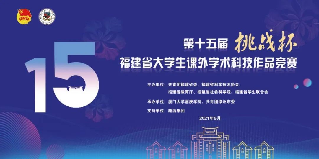 注: “挑战杯”全国大学生课外学术科技作品竞赛(以下简称“‘挑战杯’竞赛”)是由共青团中央、中国科协、教育部、全国学联和地方政府共同主办,国内著名大学、新闻媒体联合发起的一项具有导向性、示范性和群众性的全国竞赛活动。自1989年首届竞赛举办以来,“挑战杯”竞赛始终坚持“崇尚科学、追求真知、勤奋学习、锐意创新、迎接挑战”的宗旨,在促进青年创新人才成长、深化高校素质教育、推动经济社会发展等方面发挥了积极作用,在广大高校乃至社会上产生了广泛而良好的影响,被誉为当代大学生科技创新的“奥林匹克”盛会【1】。同时,“挑战杯”福建省大学生课外学术科技作品竞赛是福建省大学生科技创新该活动的重要内容,竞赛每两年举办一届,从1992年开展至今是第十五届,是福建省大学生课外学术科技活动中一项具有导向性、示范性和群众性的竞赛活动【2】。