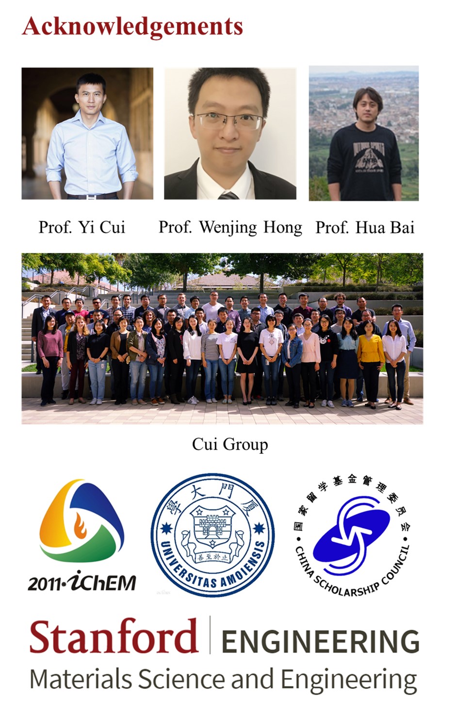 「致谢」崔屹教授,洪文晶教授,白华教授,厦门大学,能源材料化学协同创新中心(iChEM),国家留学基金委(CSC),斯坦福大学,Cui Group