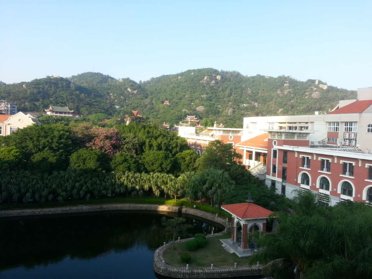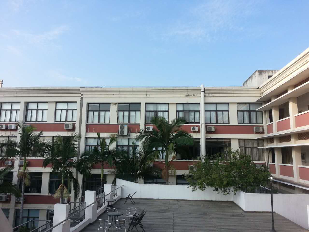 实验室外有蓝天白云、椰林树影与绿水青山与我们作伴,图为实验室外一景