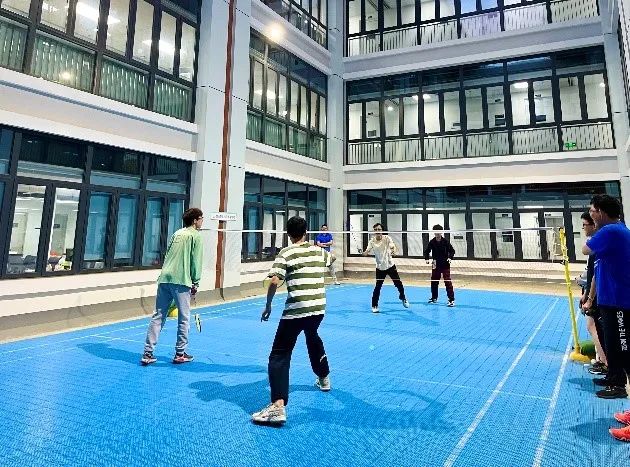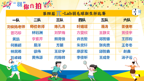 本次比赛共吸引36位“羽球高手”参加,分成6支队伍,队长分别为师佳老师、刘俊扬老师、陈孔涛师兄、叶婧瑶师姐、潘涛师兄和姜信年师兄。比赛项目分为两场男双和一场混双,组内自行分配,以单循环赛赛制进行比赛。每支队伍需要与其他五支队伍分别进行比赛,单局比赛90分制,每当有队伍先获得30分或60分则更换一次出场人员,按照男双-男双-混双出场顺序,率先获得90分队伍获胜,按照五轮比赛净胜分决定最终排名。