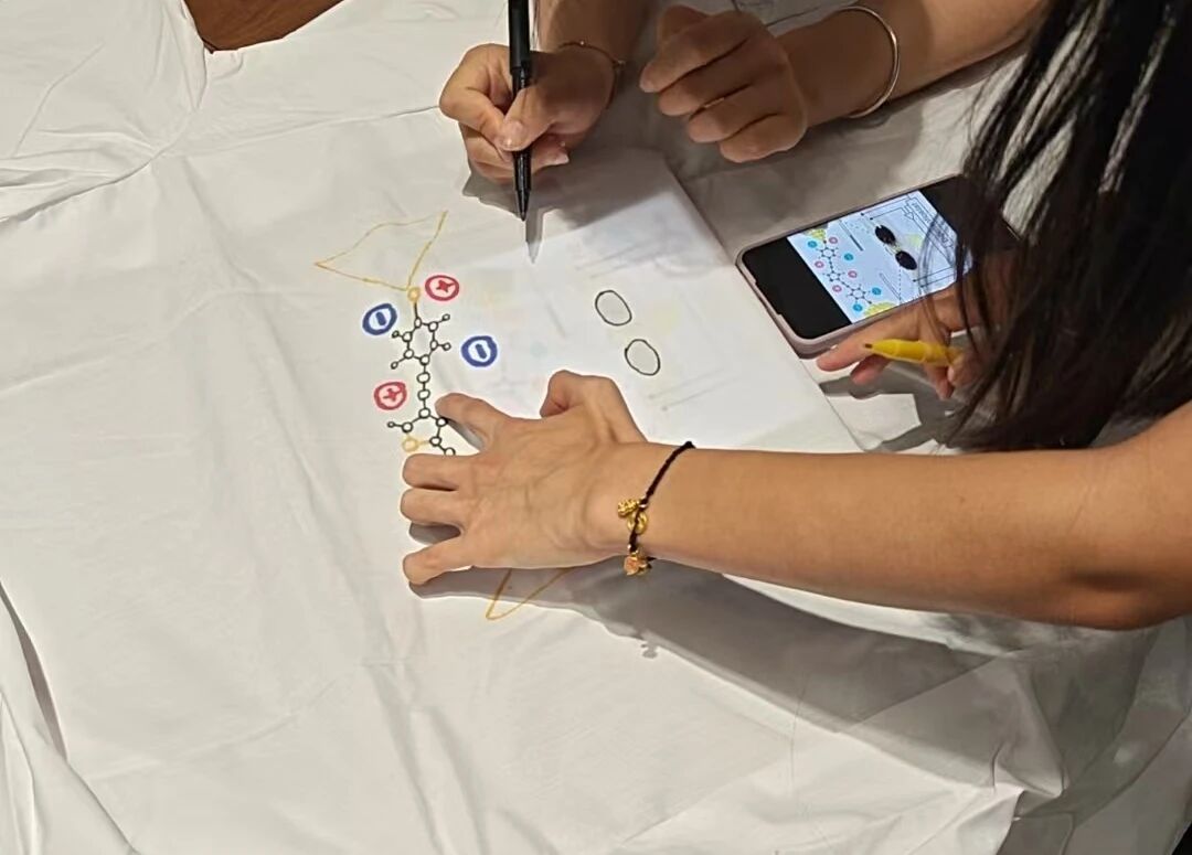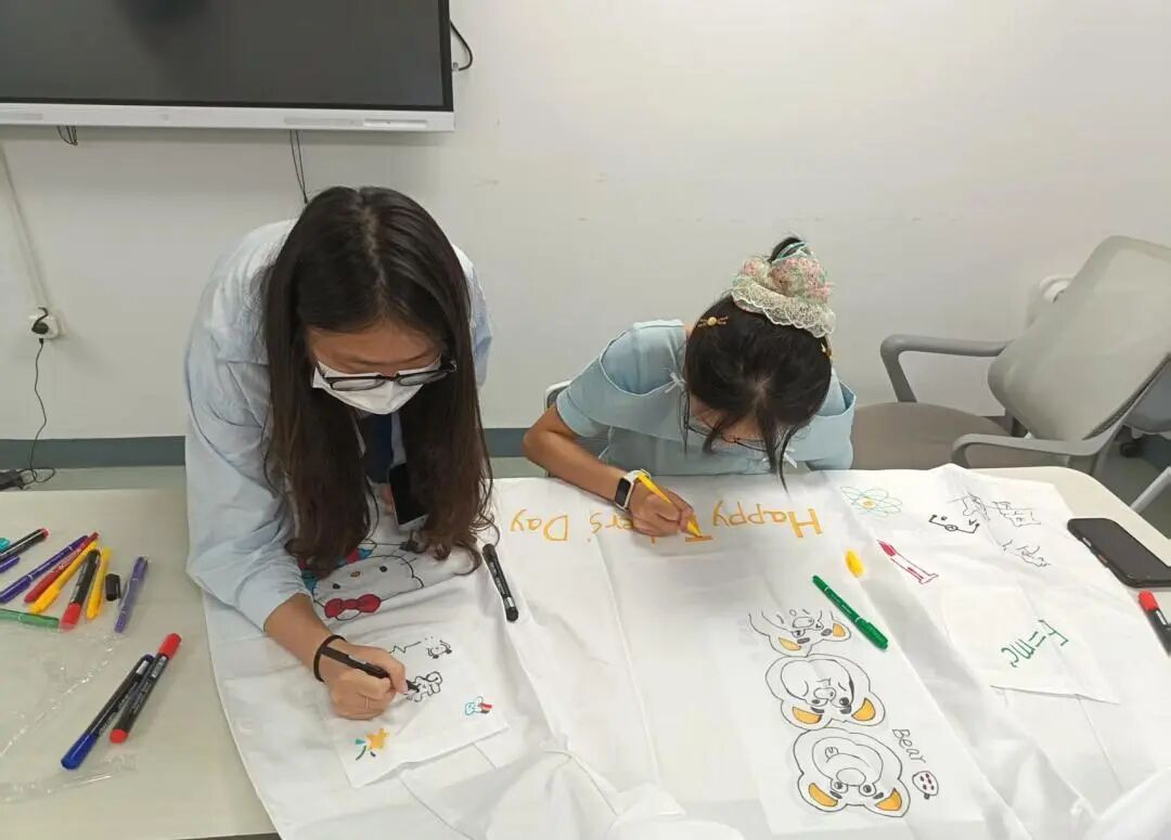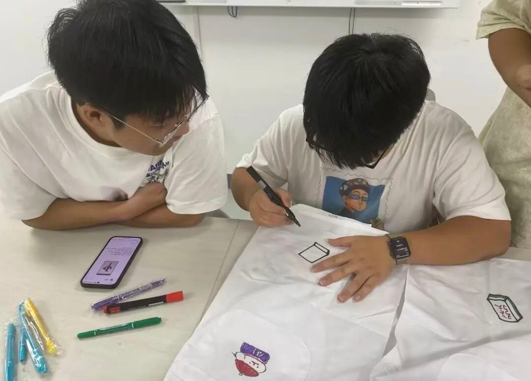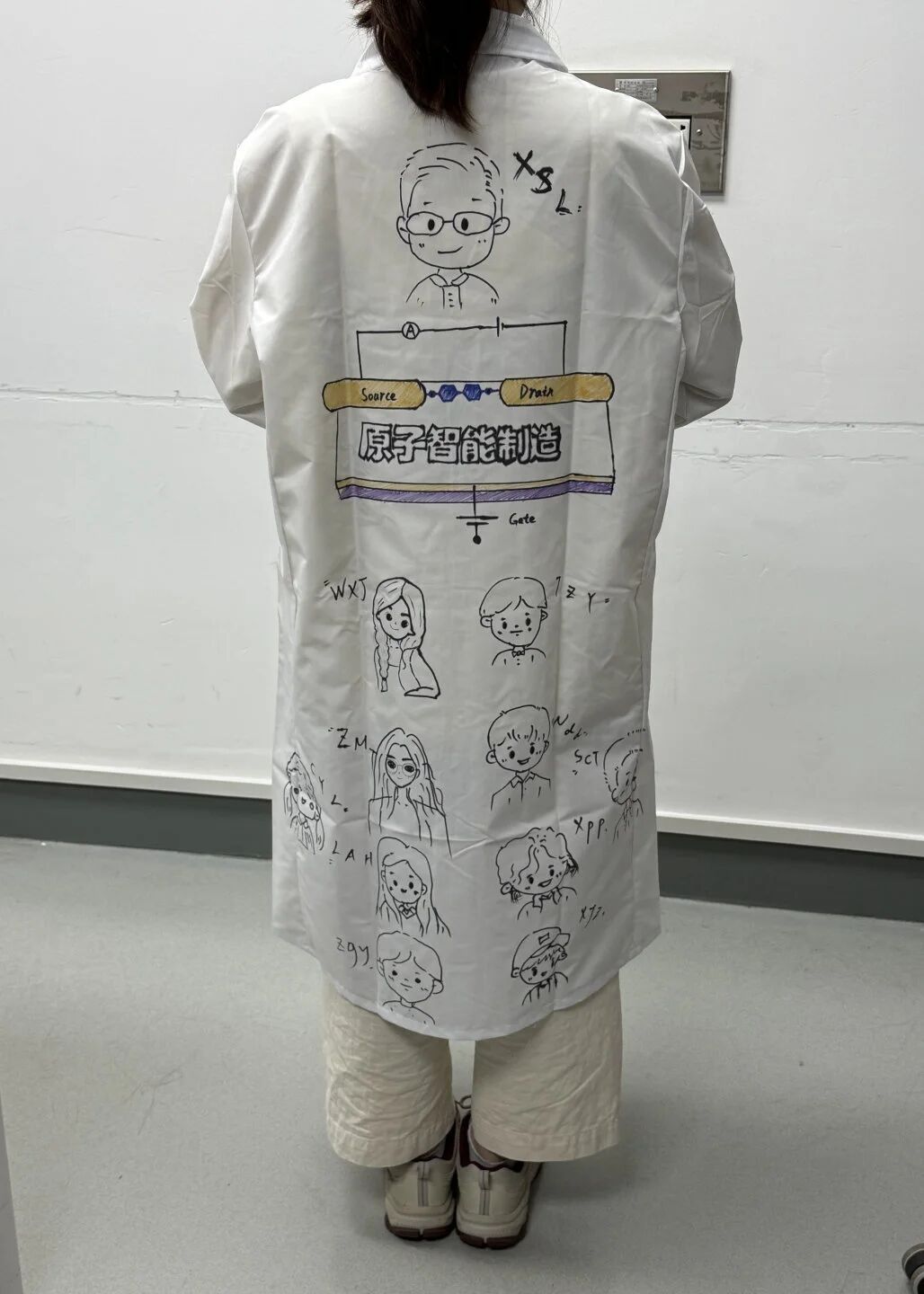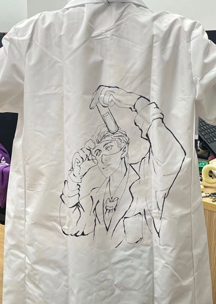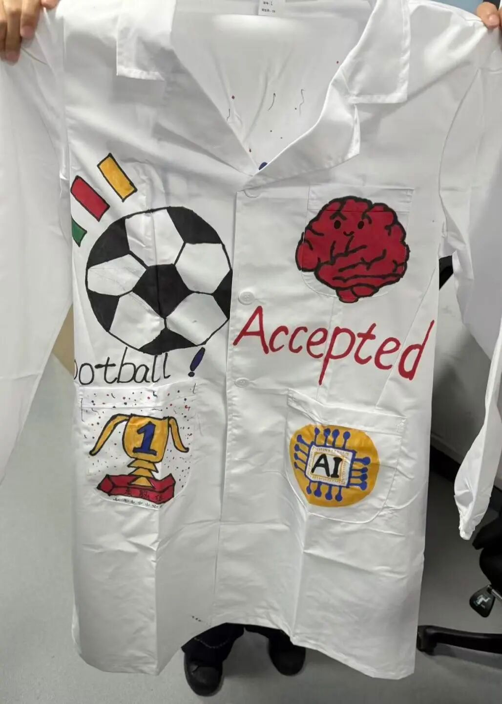 同学们拿起画笔,将老师的谆谆教诲、科研路上的点滴感悟,化作一个个充满创意的图案。同学们根据每个老师的特点以及兴趣爱好,为每位老师定制了不同的“战袍”,让每一件实验服都成为老师的"科研名片"。