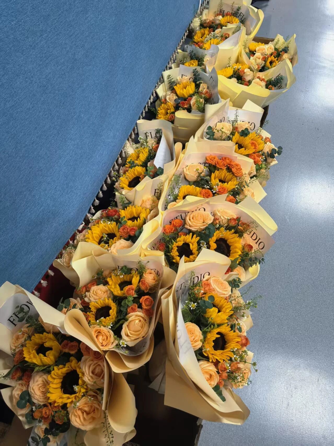 除了亲手绘制的实验服,我们还为每位老师准备了精美的鲜花。一束束绽放的鲜花,如同老师们在我们成长道路上播撒的知识种子,如今已花开绚烂。