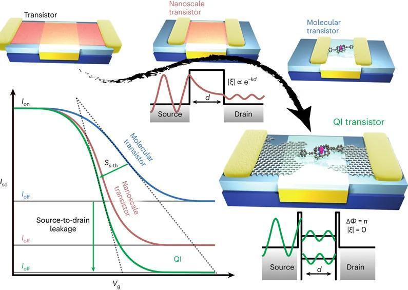 图1. 量子干涉增强的单分子晶体管性能示意图。